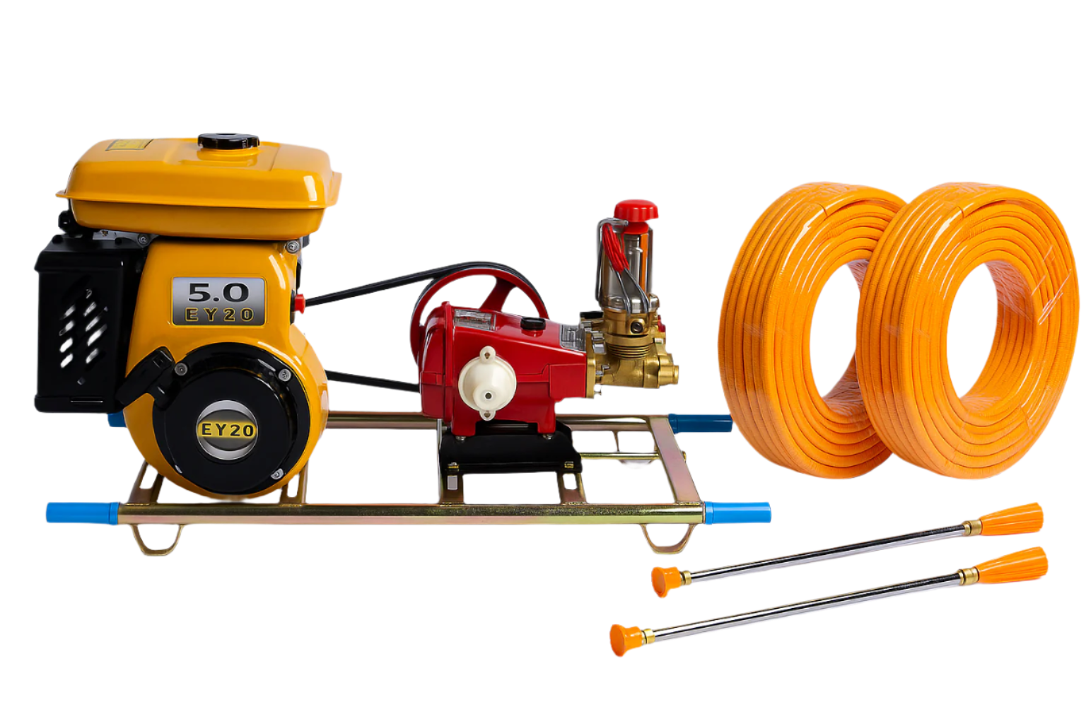 Boost your agricultural efficiency with the Robin EY20 5.0 HP gasoline engine paired with the powerful Vackson VS-30 high-pressure sprayer. Designed for durability and consistent performance, this unit is ideal for large-scale spraying tasks such as pesticide application, orchard maintenance, and disinfectant spraying. The complete set includes two heavy-duty hoses and dual spray guns for flexible operation.